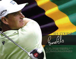 设 计者是恩尼·艾斯(Ernie Els),南非人,1969年10月17日出生. 有“球场模范生”雅号的恩尼艾斯,来自南非,彬彬有礼,但是在球场上却充满力量。早在1994年,他一鸣惊人地获得了美国公开赛的冠军; 2001年世界杯决赛,恩尼艾斯与队友古森一起,击败了包括泰格•伍兹在内的众多世界顶级高手,夺得了世界杯冠军。